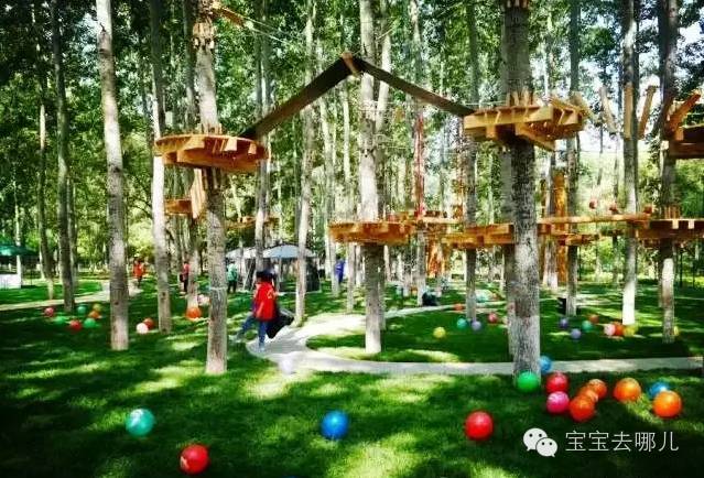 萌溪儿童户外拓展乐园坐落于奥林匹克森林公园南园,占地面积10000余平方米(好大!)
