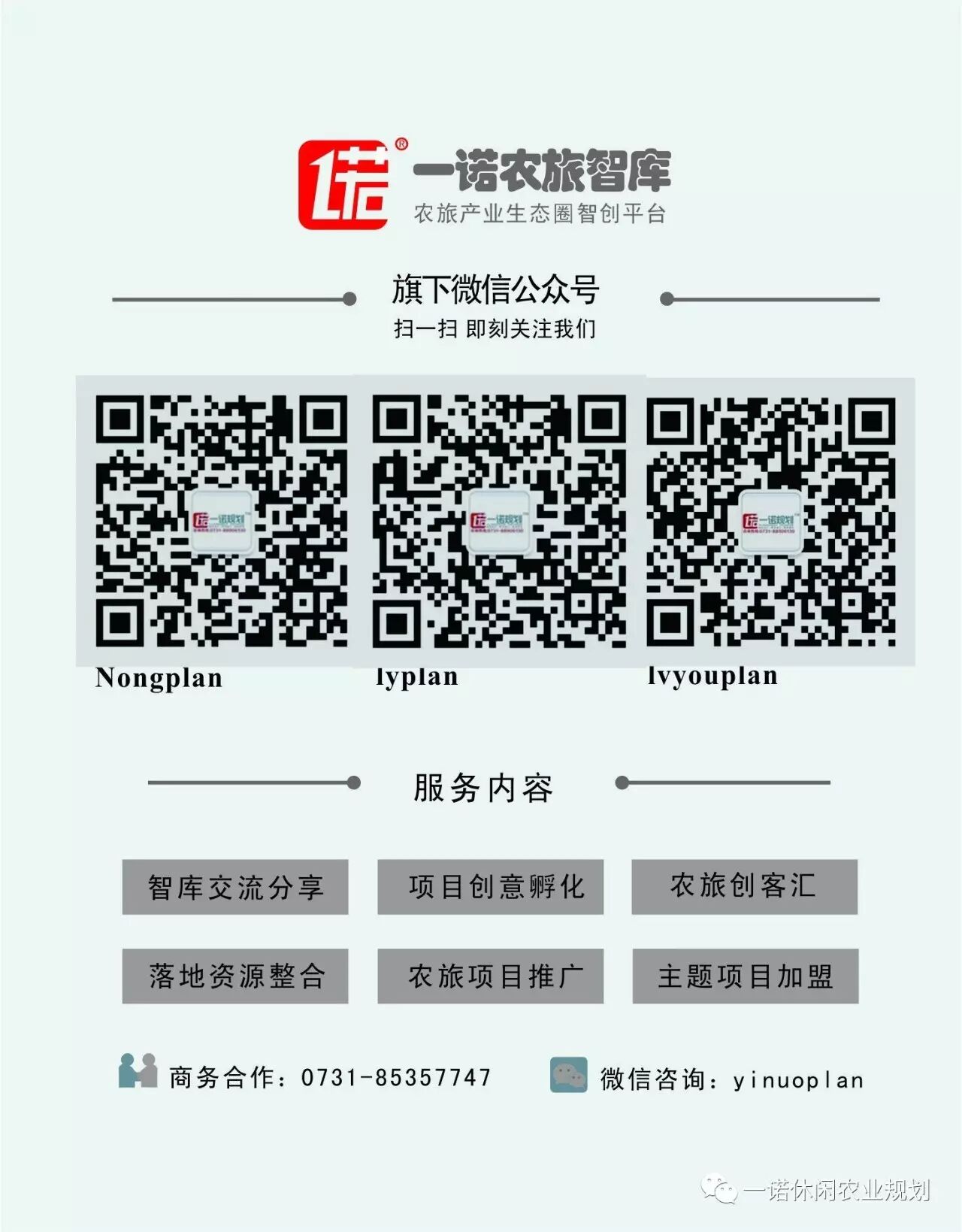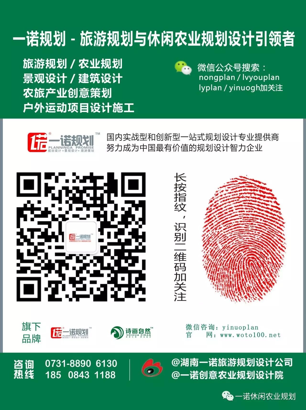 加一诺规划微信公众号:nongplan(一诺农旅规划)、lyplan(一诺创意农业旅游规划设计院)或lvyouplan(一诺农旅智库),发“1”下载一诺规划相关资料和前沿资讯,发“2”了解一诺规划经典案例;加一诺规划微信号:yinuoplan,为您提供专业咨询及服务。