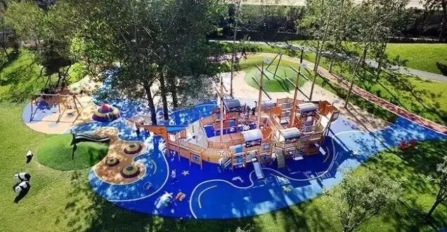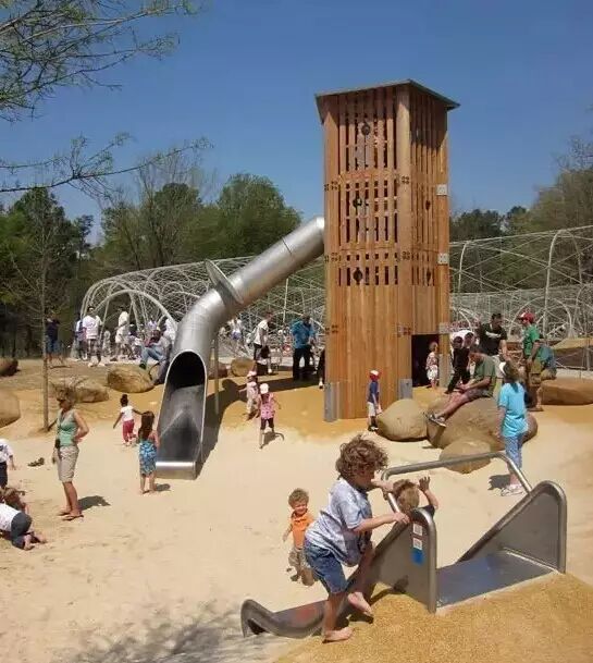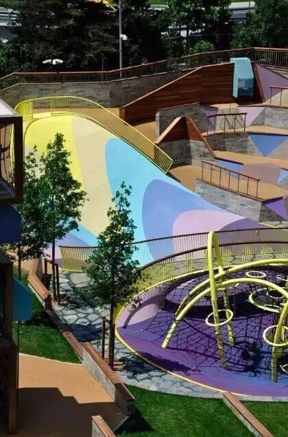对孩子们来说,场地是否“有趣”总是最关键的,而这种“有趣”往往可以通过确立某个鲜明主题来实现。夸张的造型、奇怪的设施,那些他们平常体验不到的玩耍感受,常常会让儿童兴奋异常、记忆犹新。