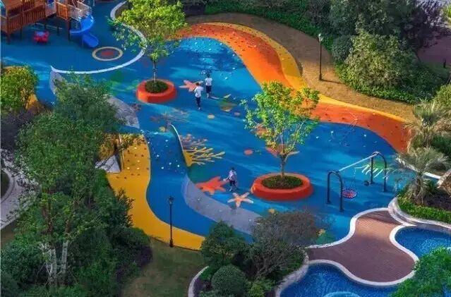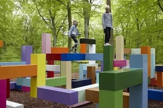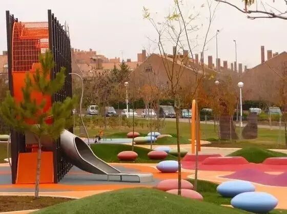 由于儿童对色彩和造型比较敏感,鲜艳活泼的颜色及多样化的造型更能吸引儿童的眼球,同时还可以提高孩子的认知能力。以不同颜色、不同材质区分不同的空间领域,不仅可以增加场地特征吸引儿童,也可以带来更丰富多彩的心理感受和玩耍体验。