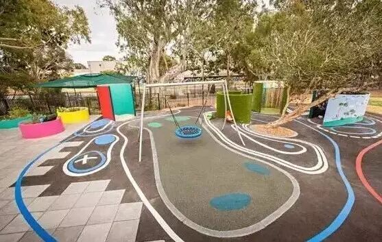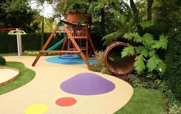 通向儿童活动场地的道路和儿童活动场地内的道路表面要平整防滑,而通向幼儿活动场地道路还要方便婴儿车通行,在幼儿活动区中应有一片硬地,供小孩玩小车,骑三轮等。在所有的游戏设施下都应该采用保护性的地面,如沙地、注塑橡胶、橡胶垫等。