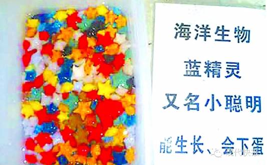这种儿童玩物有人叫它“海洋宝宝”、“水精灵”、“放大豆”……放在水里一小时就可膨胀十倍以上,最大甚至可达100倍!