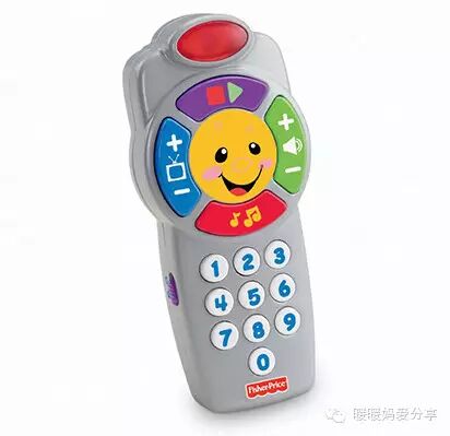 好像所有的宝宝天生都对各种电器的遥控器感兴趣。无奈给她买了一个费雪的遥控器玩具换掉了她手里的电视和空调遥控器。结果这一玩就不可收拾。这个玩具的好处就是按钮和功能几乎完全根据电视遥控器来设计。数字的不同可以切换不同的频道,放出不同的声音。后来这个玩具就变成了我们每次坐车、坐飞机的必备安抚玩具之一常年放进了妈咪包。