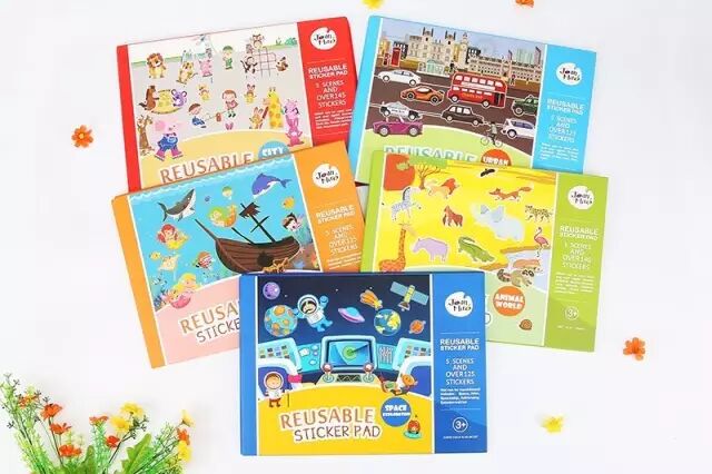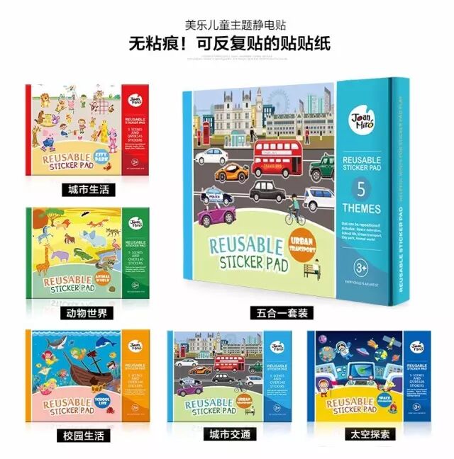 这款贴纸属于儿童贴画系列,采用静电工艺,100%环保无粘痕可反复贴纸,图案全由知名插画师原创设计。