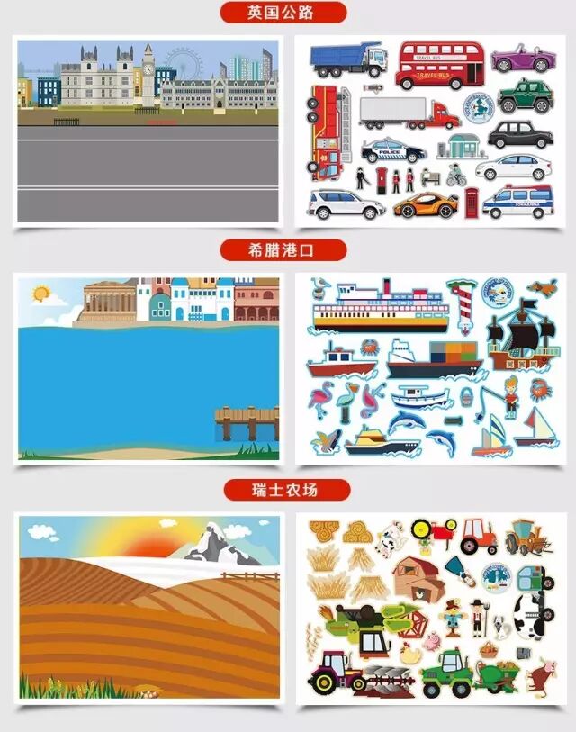 当然孩子的想象力绝对不会只局限在这些场景画中,他们有可能将贴纸贴在家里其他地方。