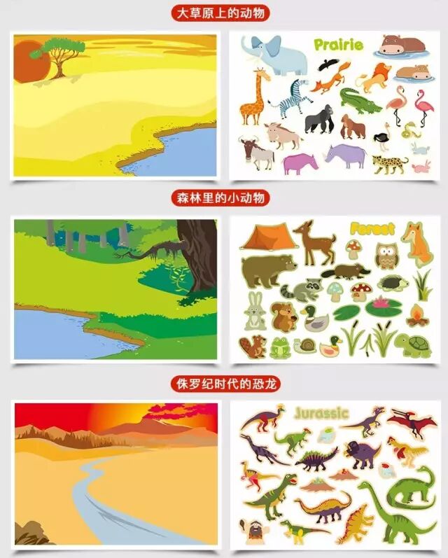平时家长经常带娃看动物,有海底的动物、草原的动物,孩子们贴纸时也都会一一对照。