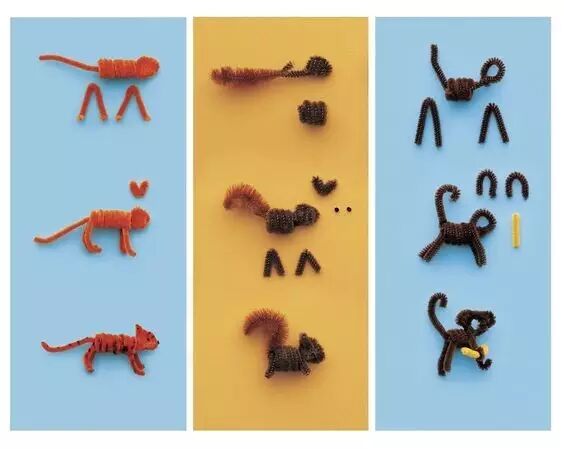 用粗毛根,制作一些小动物,像方大手一样,做个大象、河马、乌龟、大熊猫……就可以利用这些毛绒绒的玩具给孩子讲故事啦!