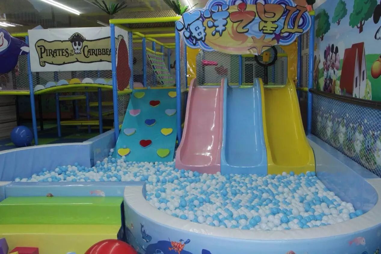 小P孩儿童主题乐园内有:滑梯、攀岩、沙滩、蹦床、椰子树、球池、带鱼水床、摇摆机、游戏机、玩具、手工区、电玩区、故事书等。