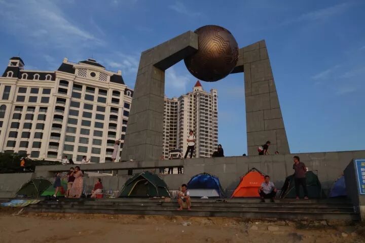 在青澳湾,记者还发现,不少游客在沙滩及广场上搭帐篷过夜,仅“自然之门”观景台上,就搭了5、6个帐篷,人们欣赏“自然之门”的时候,不得不顺带“观看”帐篷。