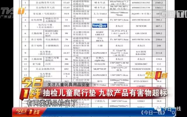 有不少家长喜欢买地垫给小宝宝,练习爬行、学步。不过,近日北京市消协发布了儿童爬行地垫商品的比较试验报告。报告显示,32个品牌的35种样品中,有22种样品测出有害物质甲酰胺,其中,9种样品甲酰胺超过欧盟标准,其中不乏知名品牌上榜。