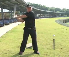 将球Tee架在球杆的另一侧进行击球