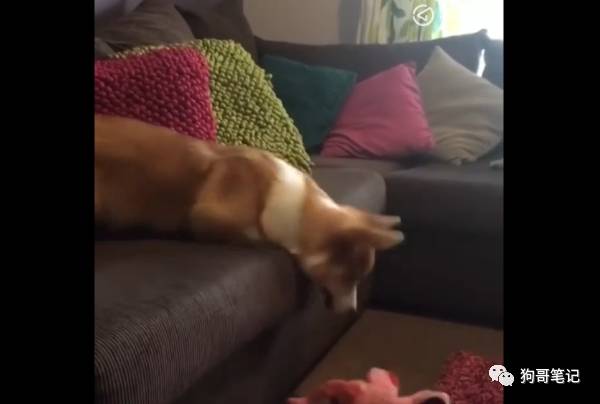 但是家里如果养的是柯基犬,那么千万别让它在沙发上玩玩具,要不就可能发生跟这一只蠢基一样的事情!