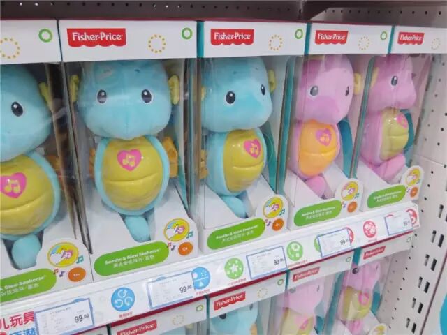 ▲ 这是声光安抚海马,适合宝贝在入睡时使用,按了胸前的音乐键,海马会发出柔和的催眠声音,并有暗黄色的灯光。售价99元。