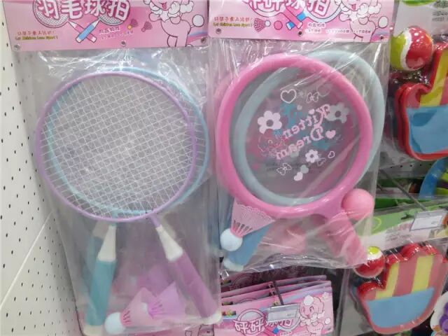 ▲ 还有宝贝专用的迷你羽毛球拍、乒乓球拍等,售价都在50元以下。