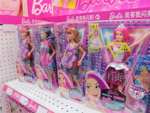 ▲ 每个女孩都有一个芭比娃娃梦,这是最新款的摇滚芭比,左边一套装扮的149元,右边的可变装的249元。