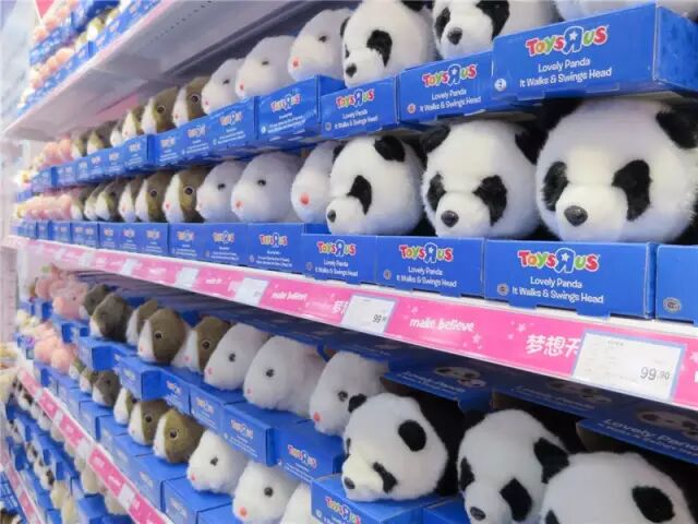 ▲ 现场还有很多毛绒玩具,这款电动小熊猫是玩具反斗城自有品牌,99元。
