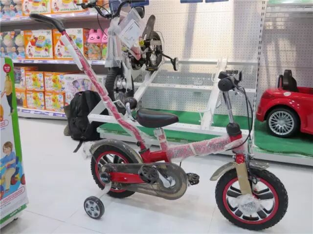 ▲ 这两自行车是宝马mini的,629元,辅助轮可以拆掉,宝贝可以从4岁一直可以玩到6、7岁。