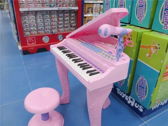 ▲ 这款迷你钢琴,宝贝可以坐在这里弹奏一下。原价是499元,开业前三天是优惠价299元。