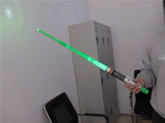▲ 这把星球大战的“光剑”,按电池可以发光,199元。剑身可以伸缩,缩回去小臂长短,可以放进妈妈的包里,全部拔出将近1米长噢。