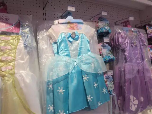 ▲ 不仅可以抱着冰雪奇缘的娃娃,你也可以cosplay成他们,这件小裙子189元。衣服都很迷你,适合学龄前的宝贝穿。