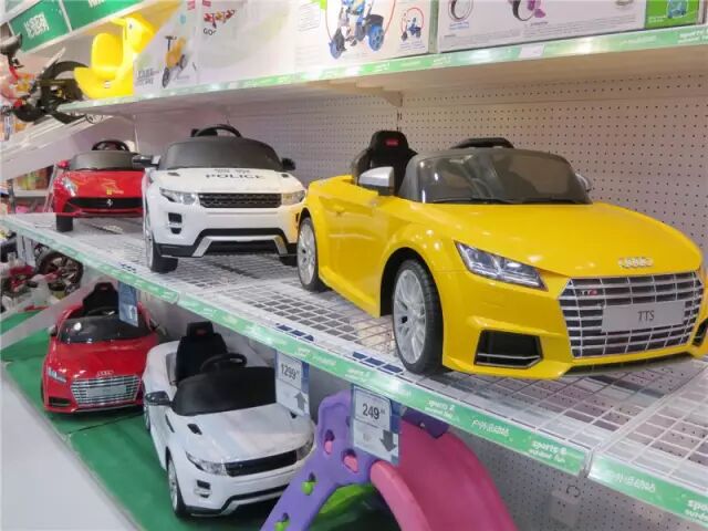 ▲ 前面提到的仿真电动车,一眼望去都是名牌,奥迪、路虎、保时捷。都是得到授权生产的玩具车。