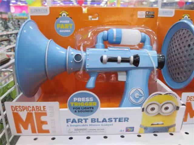 ▲ 这本枪特别吗?这是小黄人的“屁屁枪”,一发射,就出现小黄人 放屁的声音,199元。现场小黄人专柜里还有小黄人的电动和拼图玩偶。