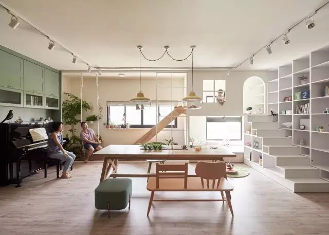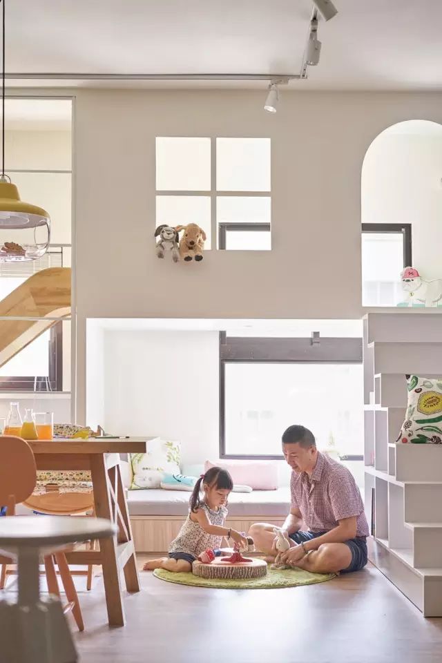 “在家要享受与家人相处的时光",是这对夫妇的初衷。打造一个开放区域让孩子自由撒欢,顺便加强亲子交流。