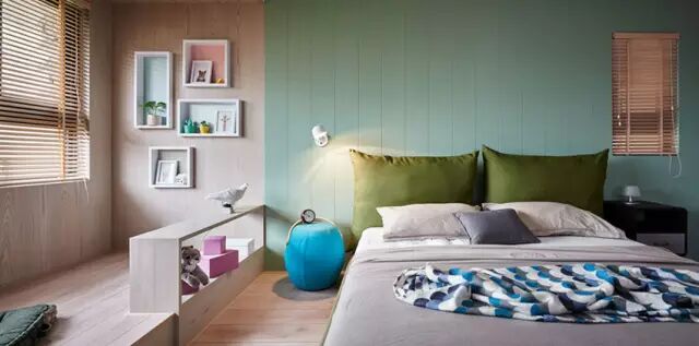 主卧靠窗打造了一个木质地台,日常夫妻俩看书饮茶都是在这里啦。