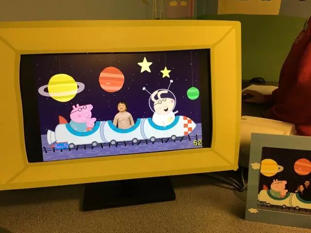 还有个我觉得有趣的地方就是Magic Photo Studio。专门把小朋友大影像嵌进Peppa Pig插画里的摄影棚。记得两张是15英镑。
