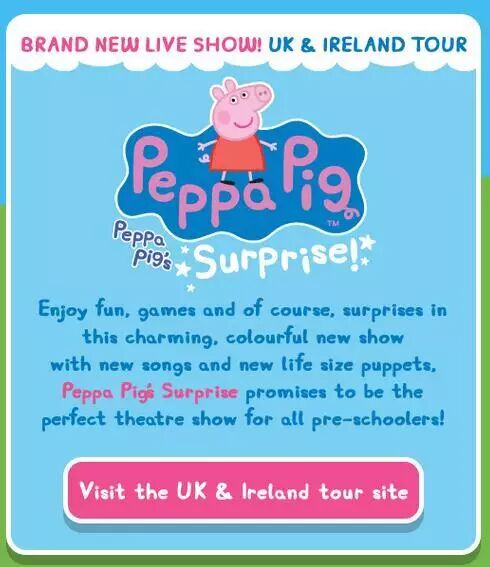 除了Peppa Pig World这个欢乐天地,英国小朋友每一年都会有新的Peppa Pig剧目演出。今年是"Peppa Pig's Surprise"。