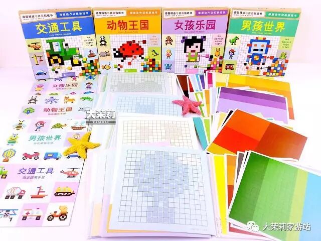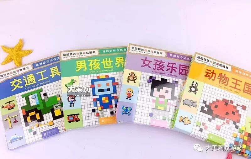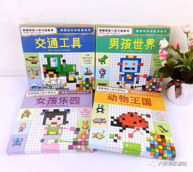 这就是今天大茉莉要给大家推荐的拥有四个不同主题的贴纸书,应该说比贴纸更高级,更有趣的玩具——马赛克贴纸书。