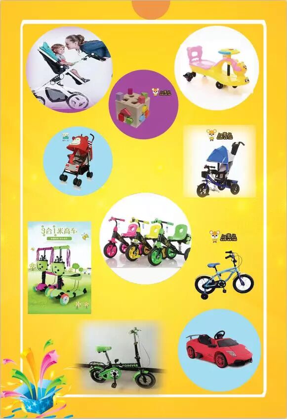 「小魔鼠童车」 有伴随孩子成长的摇篮车、妈咪手推车、学步车、摇摆车、三轮车、迷你自行车等童车共计十个系列,品种齐全,花色各异,深受儿童喜爱。