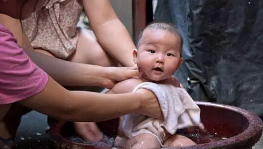 在这样的小盆子里给我们洗澡