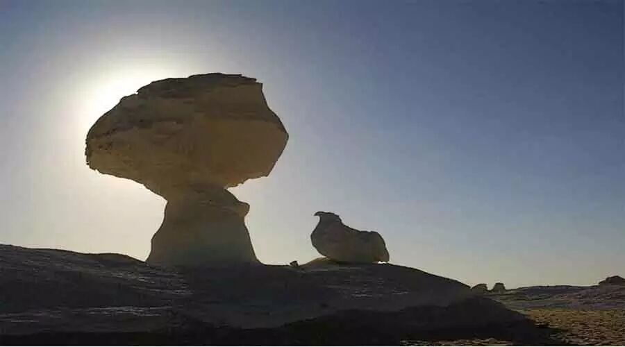 “塔敏查干沙漠”号称“八百里瀚海”。(塔敏查干,蒙语,译为“魔鬼”或“地狱”)。除其腹地生长的黄柳条、沙蒿、骆驼蓬等少许沙地植被外,一概是金光灿灿的明沙。在酷热的夏日,沙漠深处偶而会出现“沙市蜃楼”的奇观,绡纵即逝,如梦如幻。