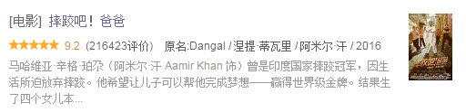 不知道大家有没有注意到。在《摔跤吧!爸爸》未引进之前,豆瓣评分一直是在9分以上。