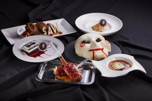 “电锯惊魂”迷有福了!不但有电影主题的鬼屋,也有主题美食。经典的BILLY头成为了美食,如果刚刚在鬼屋被它吓得魂飞魄散,现在就是好时机去报复了。