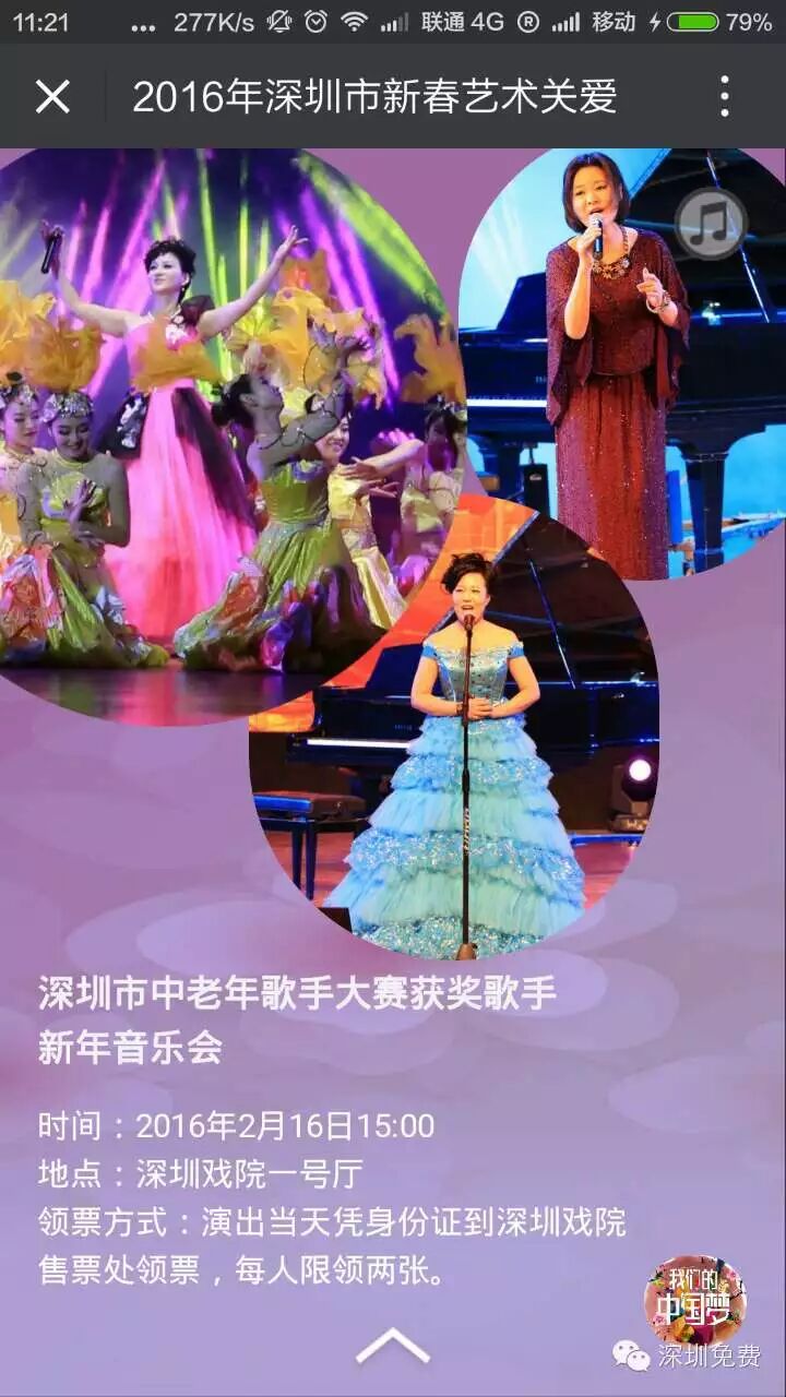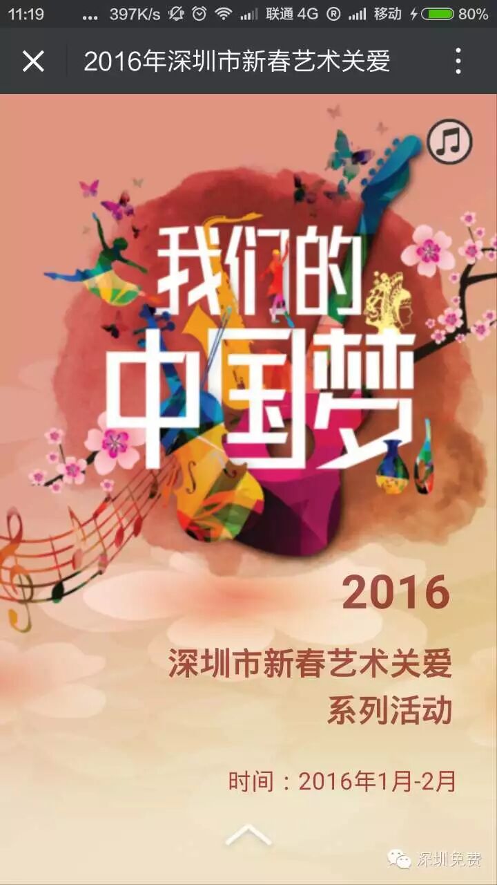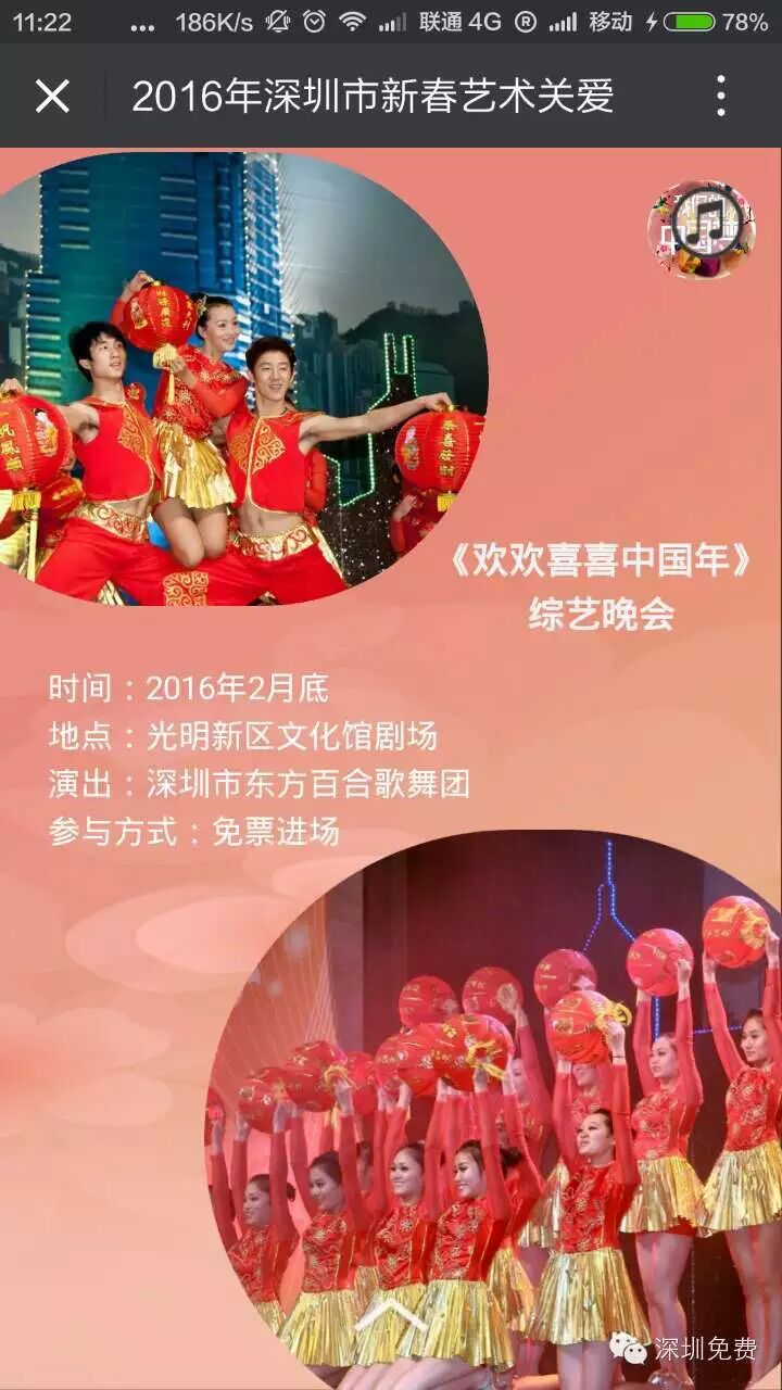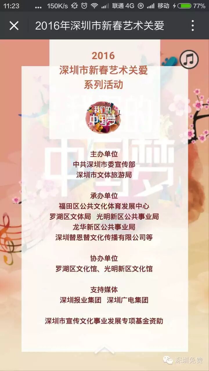 2016年深圳市新春艺术关爱“我们的中国梦”42项系列文艺活动免费向市民开放