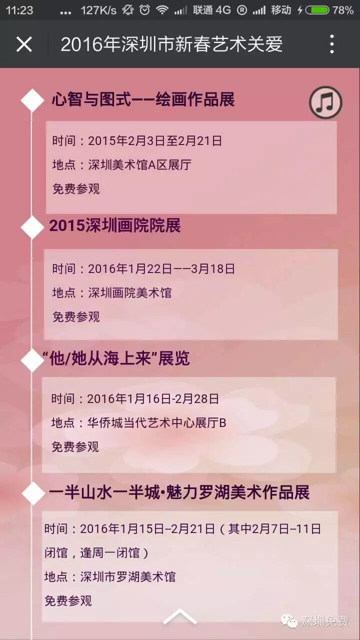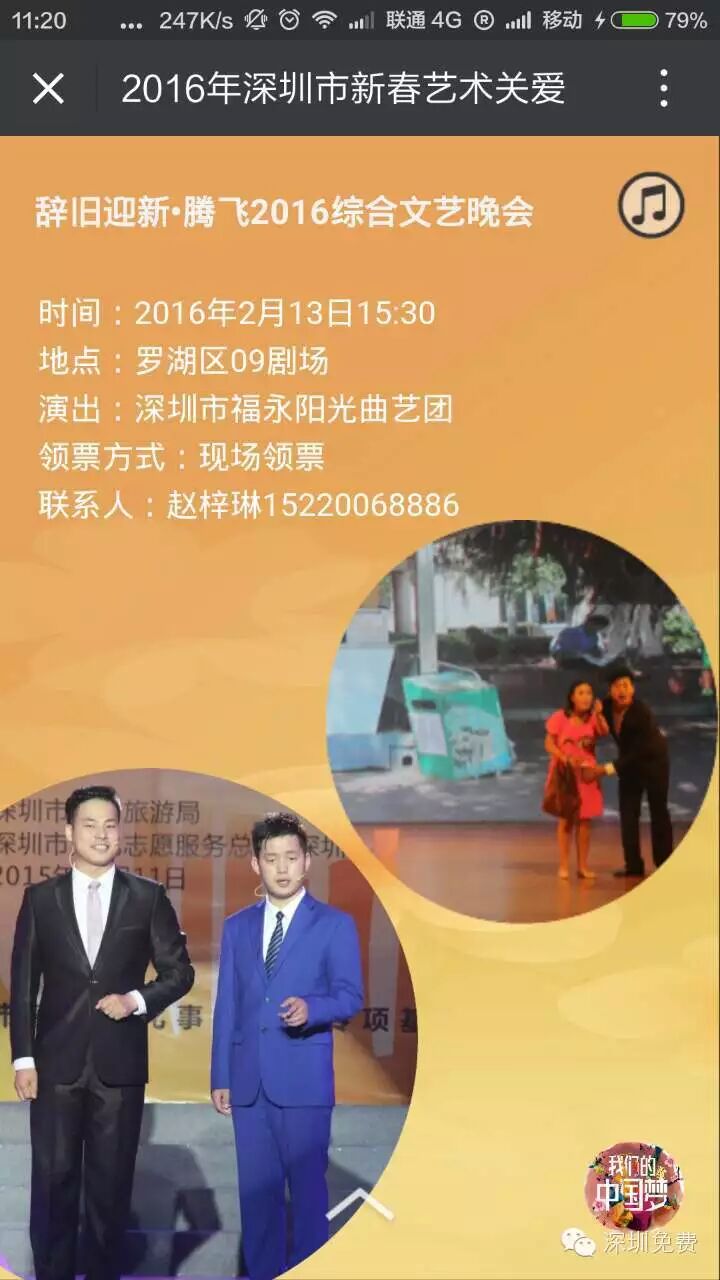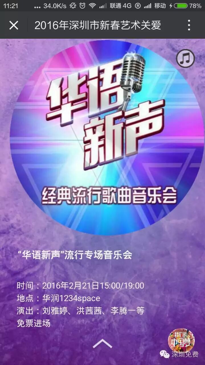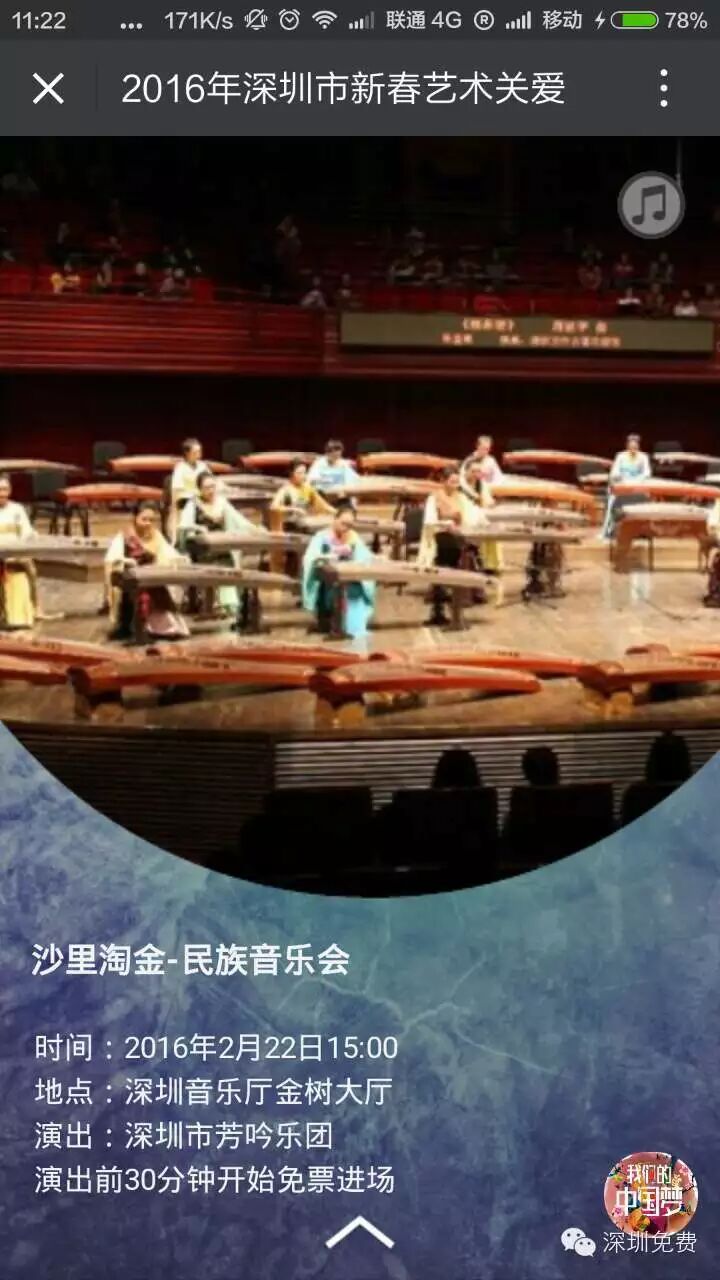2016年深圳市新春艺术关爱“我们的中国梦”42项系列文艺活动免费向市民开放