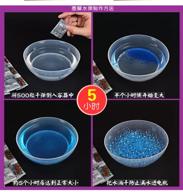 内附:2包200发吸水晶弹(未完成品)、1瓶85发吸水弹(完成品)、3发软弹
