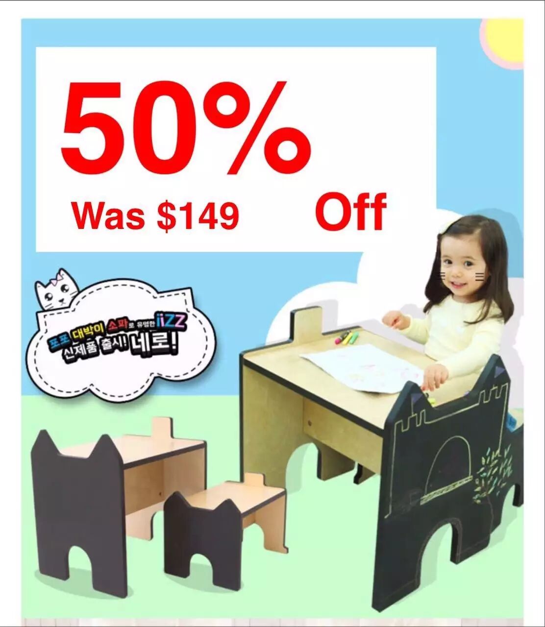 IIZZ小猫造型多功能桌椅,桌椅翻转分分钟变书柜,侧面黑板可以随意涂鸦,湿巾就可以轻松擦除。环保无毒MDF, 清仓处理剩余库存,原价:$149,现折扣高达50%!