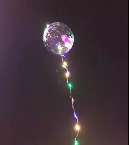 所谓“网红气球”,整个球体是透明的,气球外面被一根很细的LED彩灯带环绕。