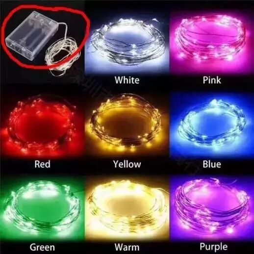 彩灯带另外一头连着能装两节5号电池的简易塑料电池盒,可以随时控制灯带开关。