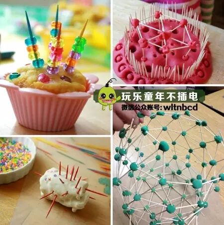 这个使用牙签和粘土配合在一起搭建出各种造型,快来试试吧!