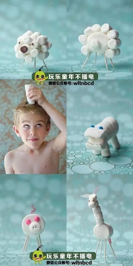 用牙签把棉花糖穿起来,组成各种小动物!看看你的动物园里能有多少种小动物!