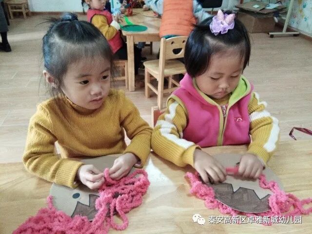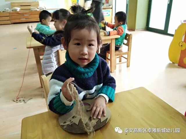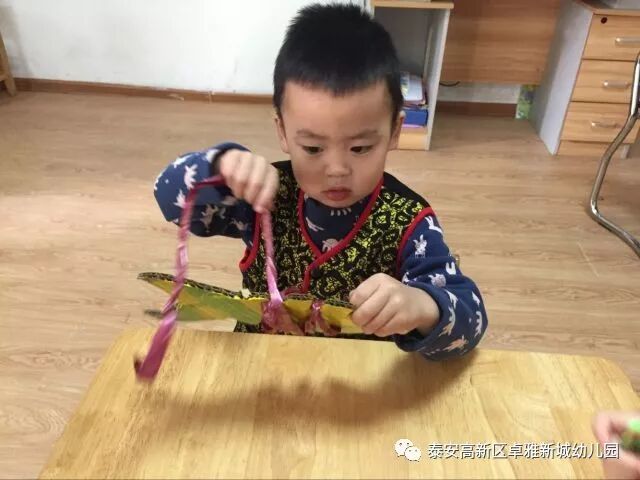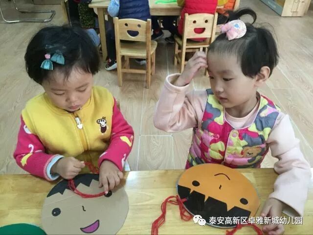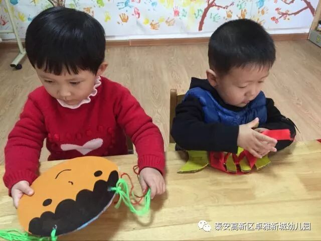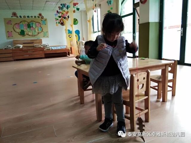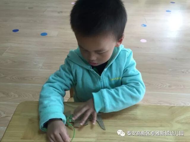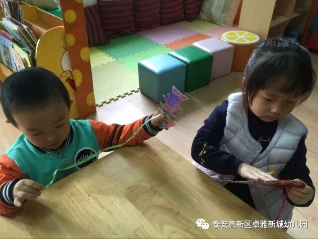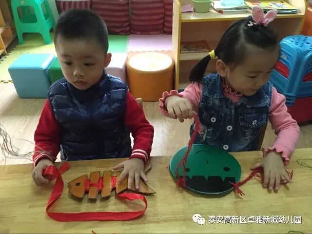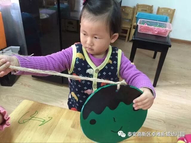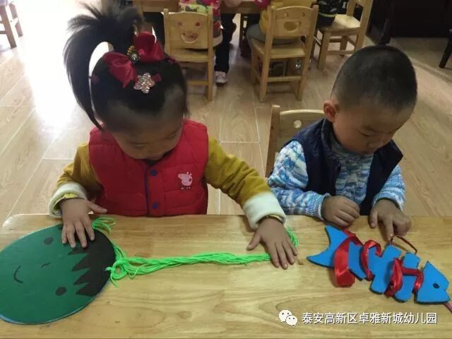 是鱼骨绕线和给娃娃扎小辫两种益智玩具哦~~这不,老师们刚刚做完,孩子们就迫不及待的玩起来啦!