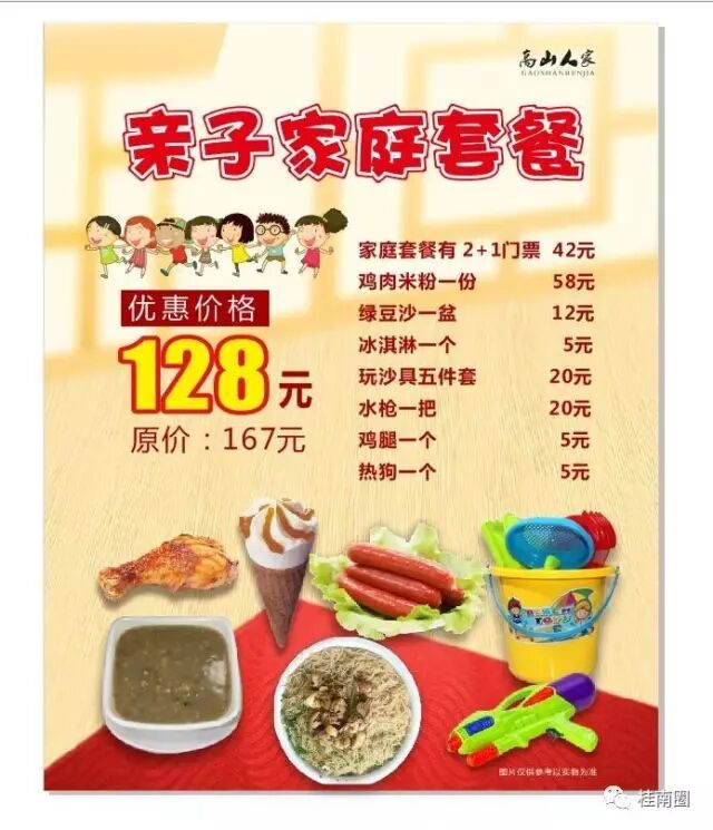 营业两年多来,高山人家的活动新颖有趣,寓教于乐,赢得了不少玉林游客的认可。接待幼儿园,小学生,初中生5万多人,接待班级活动500多次,成为了玉林最受家长孩子欢欢迎的农家乐之一。近期为配合秋季学校班级开展有益的户外活动,高山人家为孩子,为班级量身定做了各种快乐套餐活动。