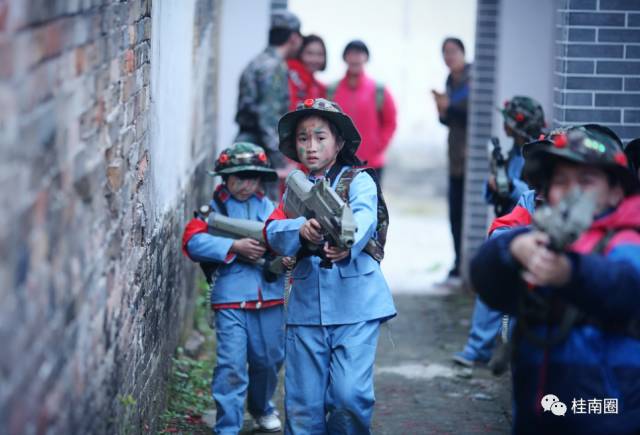穿红军服听红军故事+游古民居读《朱子家训》+打CS+拓展障碍跑+过铁索+阵+挖红薯+吃红军餐