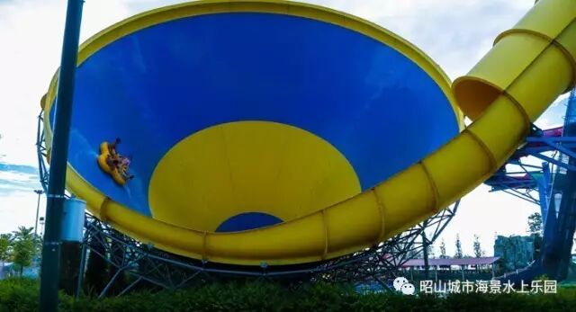 超级大喇叭:就像贝壳里的海,游客可以坐在四叶草型浮圈里面,从16米的高空滑行到直径约21米的巨大喇叭型圆锥体,像是被龙卷风吸进去的感觉。