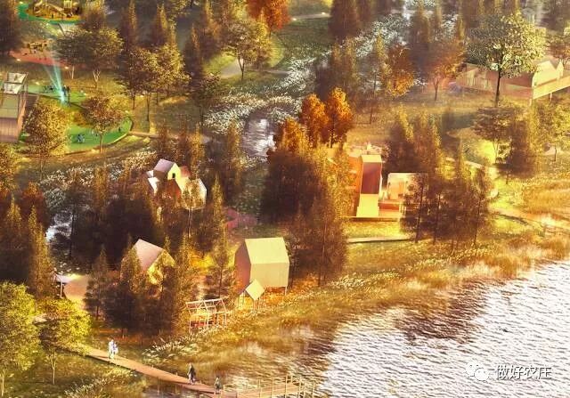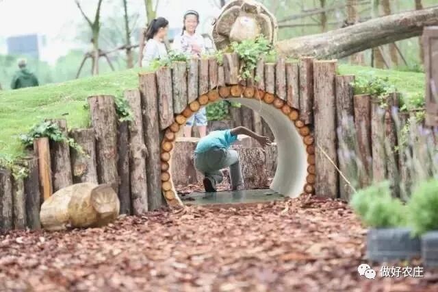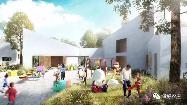 这是亲子民宿+自然教育学院+无动力游乐设施+树屋+农园+牧场+自然肌理+天然水域。