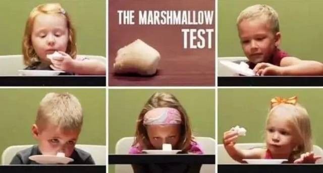 孩子们被告知,他们可以马上吃掉这块棉花糖,但是假如能等待一会儿(15分钟)再吃,那么就能得到第二块棉花糖。
